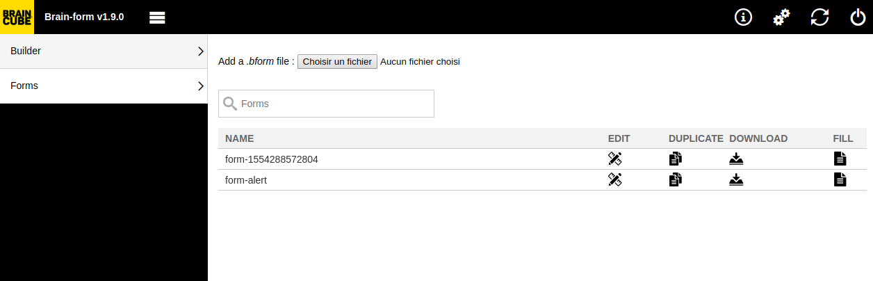 To use the forms, log on braincube and access to brain-form cloud version with the tab Apps.