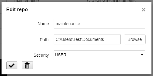 - Security : To define who is allowed to open the files of this folder (NONE : all, USER : users and administrators, ADMIN : only administrators)