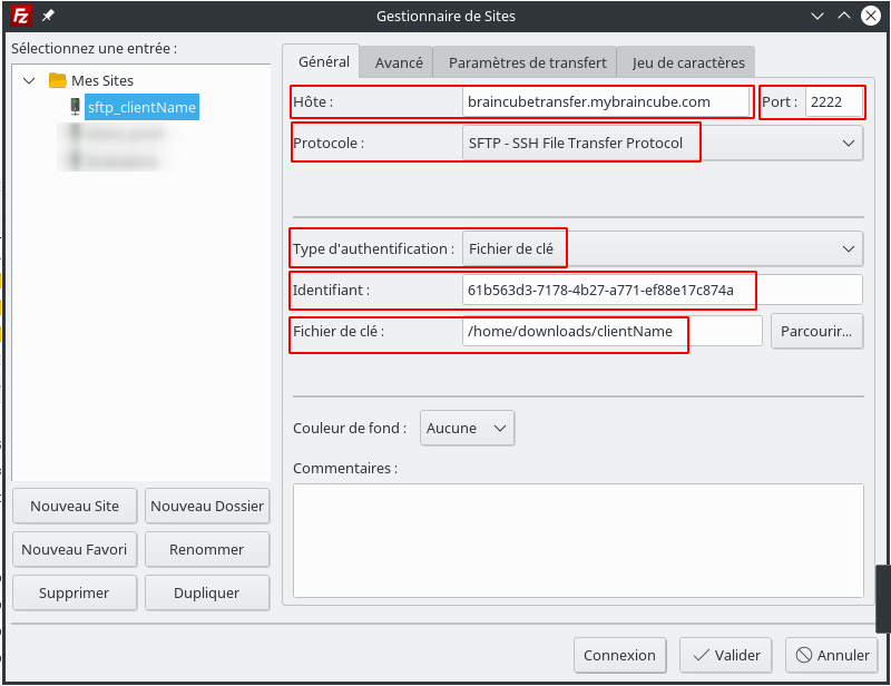 To configure your sftp client, use the following informations